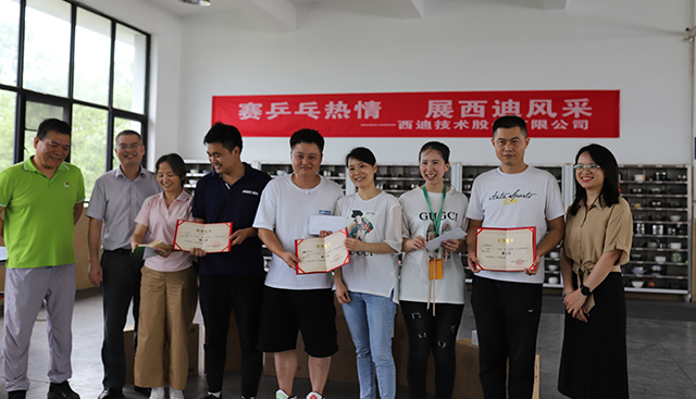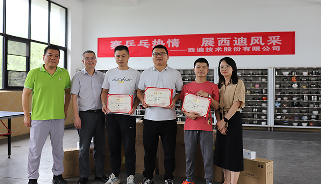 隨后,在比賽現場進行了頒獎儀式。公司董事長、常務副總以及乒乓球賽組委會主席分別為獲獎選手頒發榮譽證書及獎品。此次“賽乒乓熱情,展西迪風采”第二屆西迪杯乒乓球賽圓滿結束。展現了西迪職工們積極向上,健康生活的風采,進一步融洽工作氛圍,讓我們期待下一次比賽更加精彩!