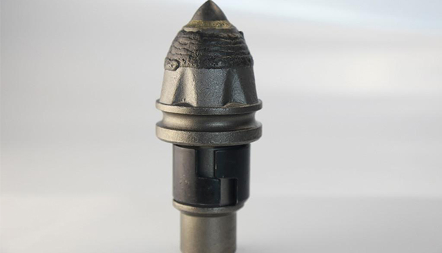 采用硬質(zhì)合金旋挖齒作為鉆機(jī)鉆頭是比較常見(jiàn)的選擇,現(xiàn)有技術(shù)中旋挖齒齒頭上焊接有合金頭,并在旋挖齒頭的錐形面表面熔覆耐磨層,提高其耐磨性。